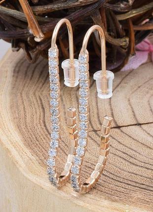 Сережки Xuping розмір 44х3 мм вага 3.4 р білі фіаніти позолота 18К.