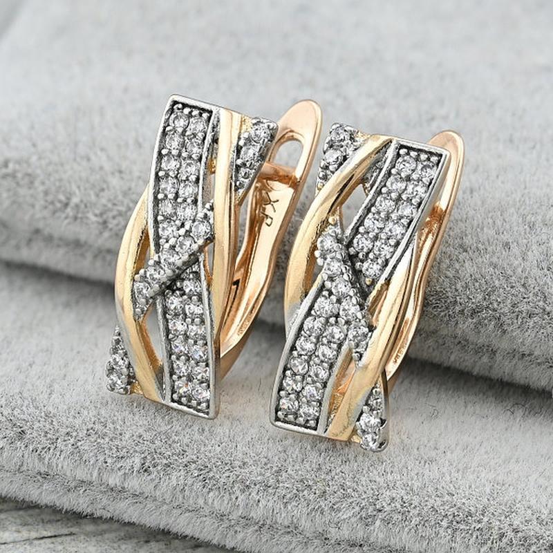 Сережки з родированием розмір 15х6 мм вага 2.0 р білі фіаніти позолота 18К.