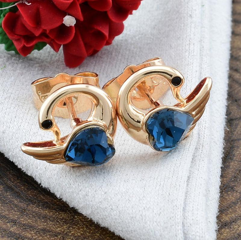 Сережки Xuping з кристалами Swarovski розмір 11х10 мм вага 2.2 р темно сині фіаніти позолота 18К.