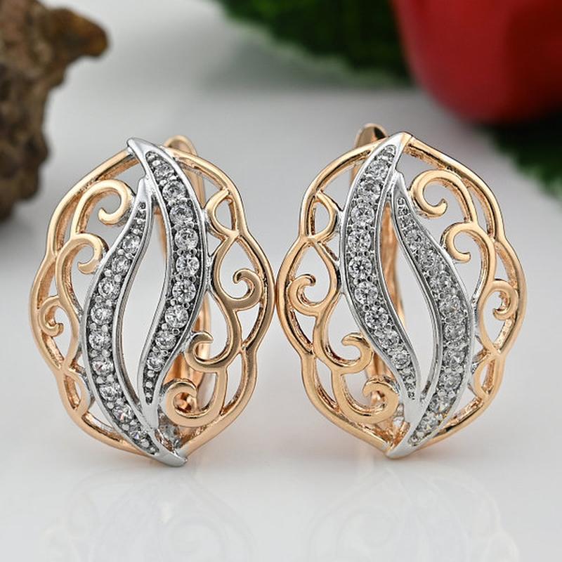 Серьги Xuping с родированием размер 18х15 мм белые фианиты вес 2.3 г позолота 18К.