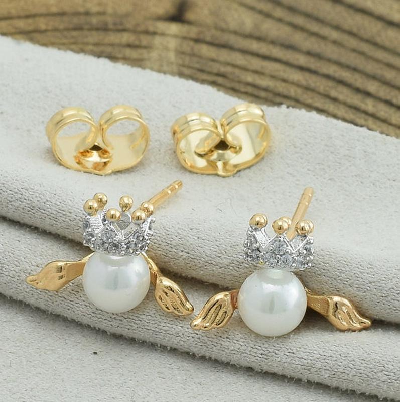 Сережки гвоздики з родированием Xuping 31786 розмір 10х12 мм штучний перли вага 1.8 м позолота 18К.