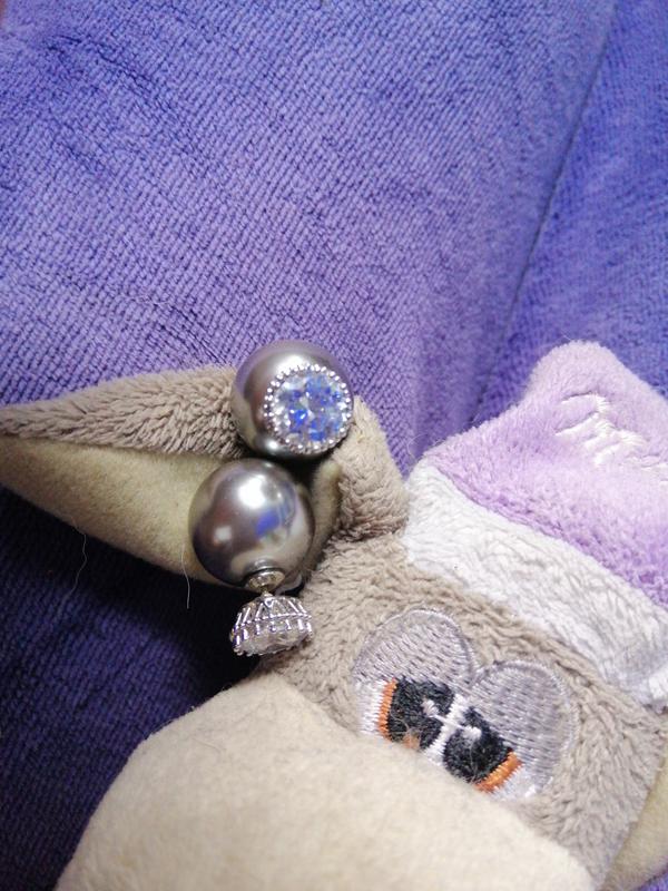 Серьги XP родий кристалл в оправе корона с с графитовой бусиной 10 мм и 16 мм
