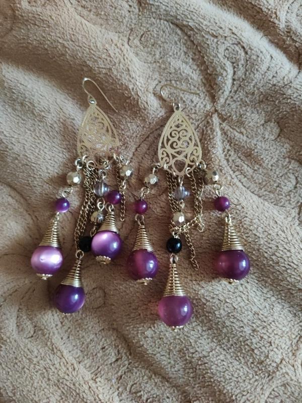 Винтаж! красивые длинные фиолетовые серьги кабашон