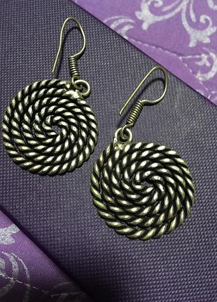 Серьги в серебряном тоне винтаж длина со швензой 4,5см,диаметр 2 5см