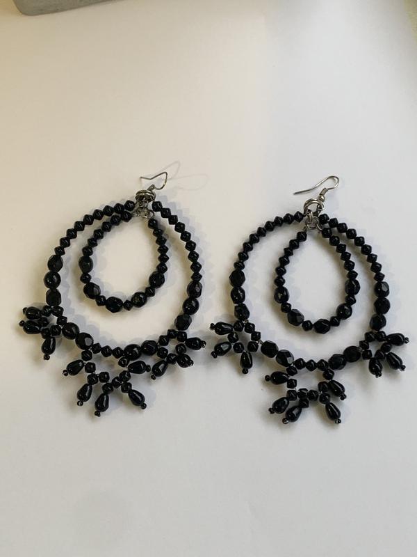 Двойные серьги кольца в черных бусинах. Hand made. Сделаны с любовью для вас! Диаметр большого кольца 5,5 Маленького 3 на 3,5 Отправим в день оплаты или предоплаты.