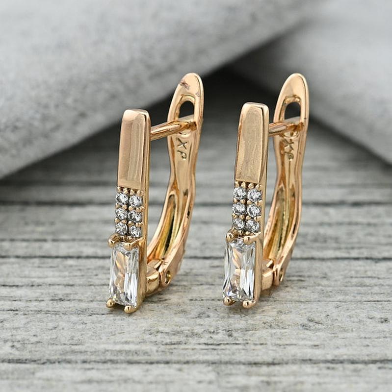 Серьги Утонченность 36327 размер 16х3 мм белие фианиты вес 1.6 г позолота 18К.