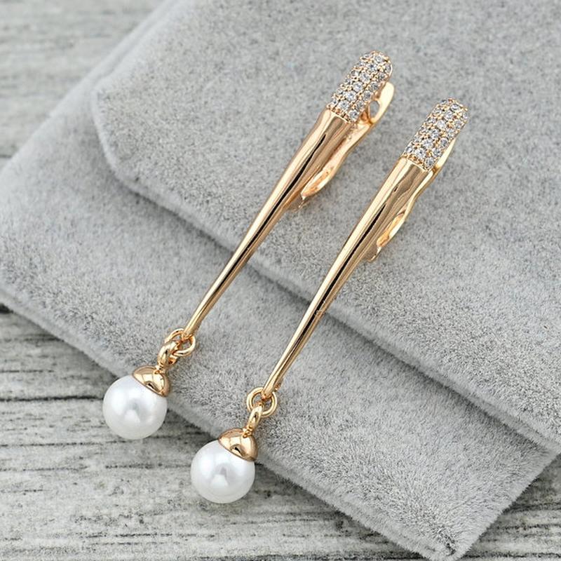 Сережки підвіски 36438 розмір 44х6 мм штучний перли вага 3.2 р позолота 18К.