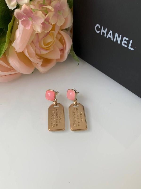 Брендовые стильные серьги с розовым камнем позолота