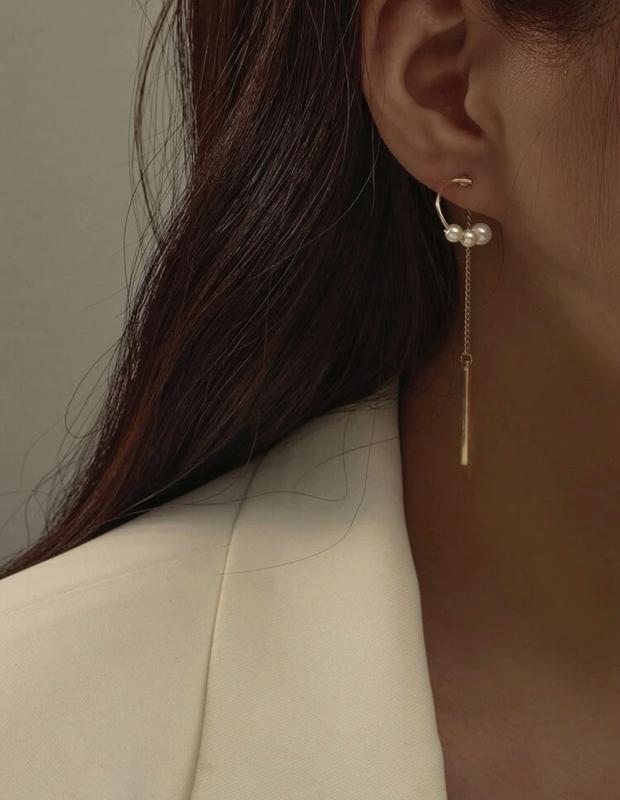 Серьги с геометрическим декором и барочным жемчугом▫️⠀ ⠀ ❗️в наличии ▰ Материал: медь⠀ ▰ Цвет металла: золото ⠀