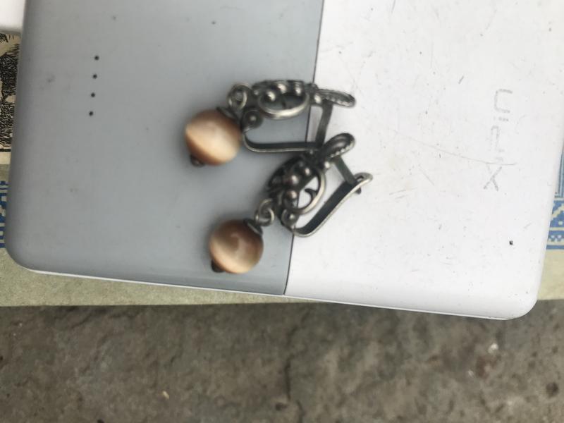 Сережки срібні.Камінь «котяче око» Англійська застібка