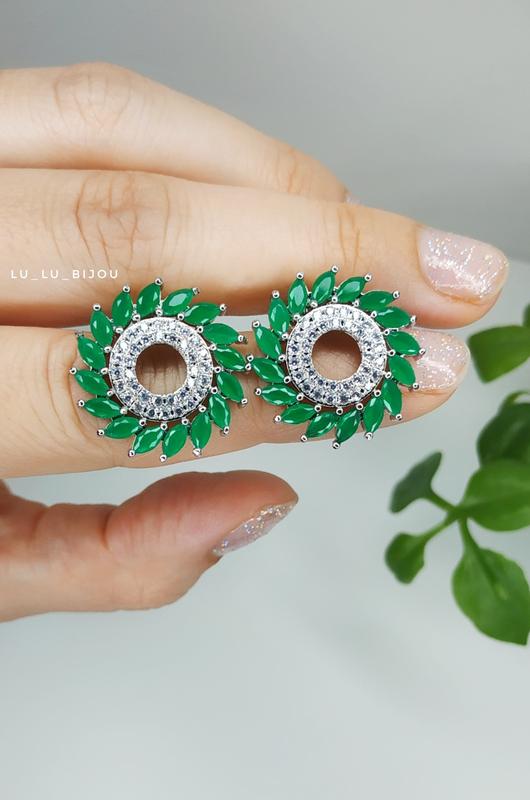 ✨ Благородный зелёный. Яркий акцент и тренд сезона✨ 🔸 Ювелирный сплав 🔸Камни кубический циркон бриллиантовая огранка кольцо р.16-16,5 300 грн серьги 320 грн набором дешевле - пишите