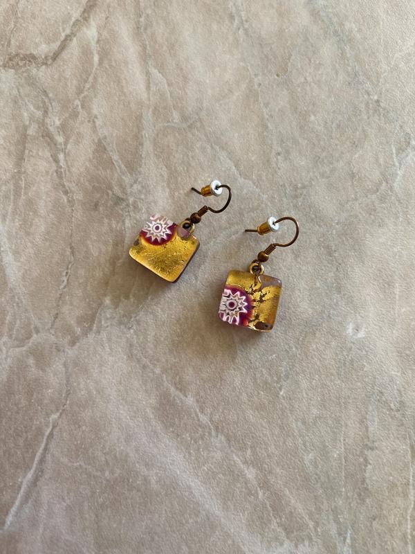 Оригинал квадратные винтажные серьги под золото муранское стекло венецианское стекло muran...
