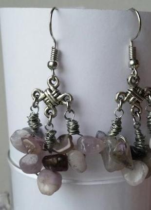 Серьги из натурального природного аметиста = темные тона= , длина со швензой ок 5 см. Металл бижутерный Готовое изделие серьги возможны в светлых / темных тонах ( как браслеты) 115 грн браслет на резинке - виды на фото - изготовлю ваш размер / 140 грн Подробности и дополнительные фото по запросу