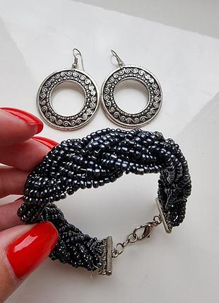 серьги скифская этаника, покрытые родием браслет из бисера (ручная работа)