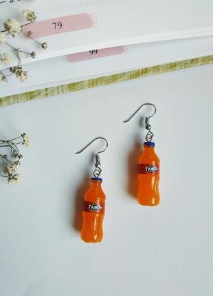 Сучасні, прикольні сережки в вигляді пляшки Fanta для себе або на подарунок сестричці/подружці. 3 см + 2 см(швенза)