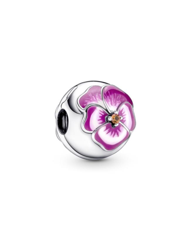 Серебряный шарм 790772c01 клипса цветок цветочек розовая фиалка с жёлтым камнем камни каме...