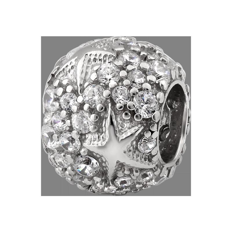 Шарм серебряный со звездочками и белыми фианитами - яркий, красивый и оргинальный. Сверху бусины блестят яркие серебряные звезды, которые придает нотки романтизма украшению. Остальное поле "усыпано" белыми камнями-вставками. Шарм из серебра покрыт родием, это придает изделию необходимую износостойкость и неповторимый блеск. Шарм носят как на браслетике с плетением снейк или же его еще называют браслет пандора. Так же этот шарм можно носить на шее как подвес. Будет шарм самостоятельным украшением или вы его дополните другими шармами-пандоринами, решать вам, а мы ждем вас на страницах нашего сайта https://f-h-jewellery.********
