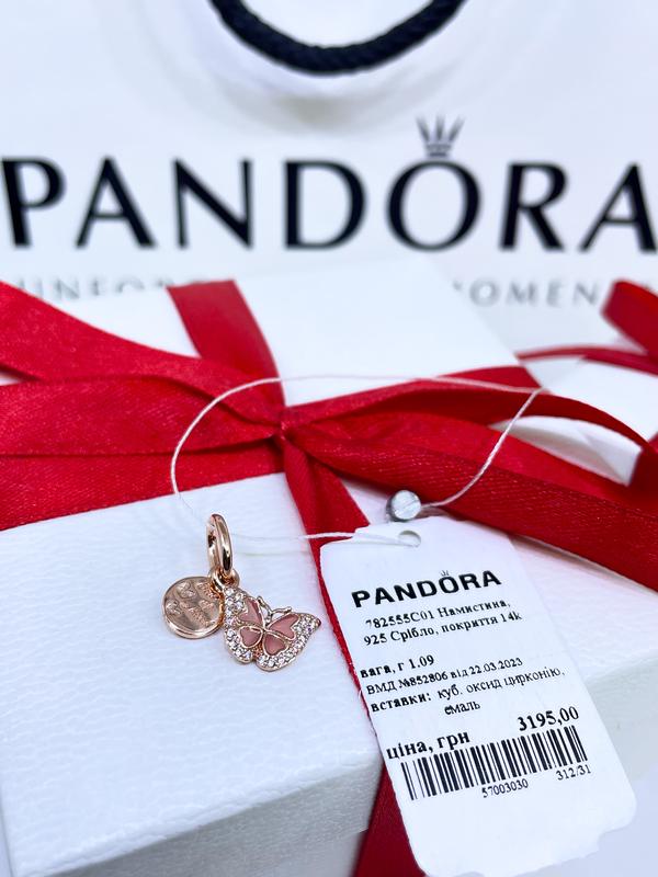 Серебряный шарм пандора 782555c01 бусина подвеска розовая бабочка единственная в своем род...