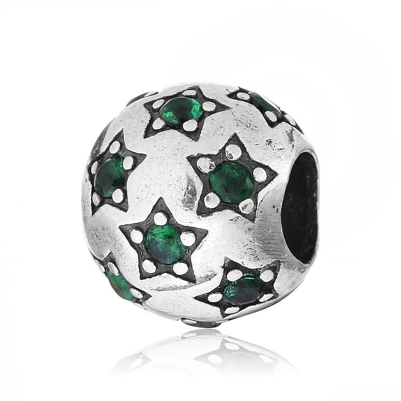 Шарм со звёздами в центре которых зеленые камни, основа серебро 925 пробы