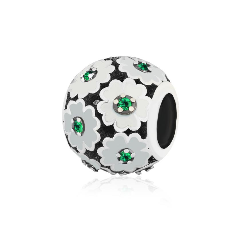 Очень нежный шарм с цветочками и зелеными камнями, основа серебро 925 пробы
