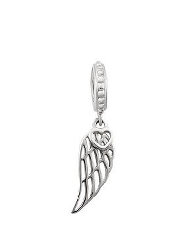 Серебряный шарм П-012р шина с крылом ангела. Помимо крыла на разделителе поблескивает маленькое сердечко, которое придает нотки романтизма украшению. Шарм из серебра покрыт родием, он защищает изделие от механических повреждений и придает ему яркий блеск. Шарм носят как на браслетике с плетением снейк. Так же этот шарм можно носить на шее как подвес. Будет шарм самостоятельным украшением или вы его дополните другими шармами, решать вам, а мы ждем вас на страницах нашего сайта **********************