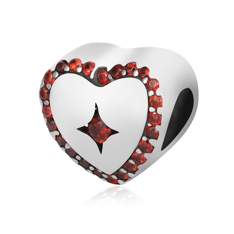 Сердечный шарм с красными камнями, основа серебро 925 пробы