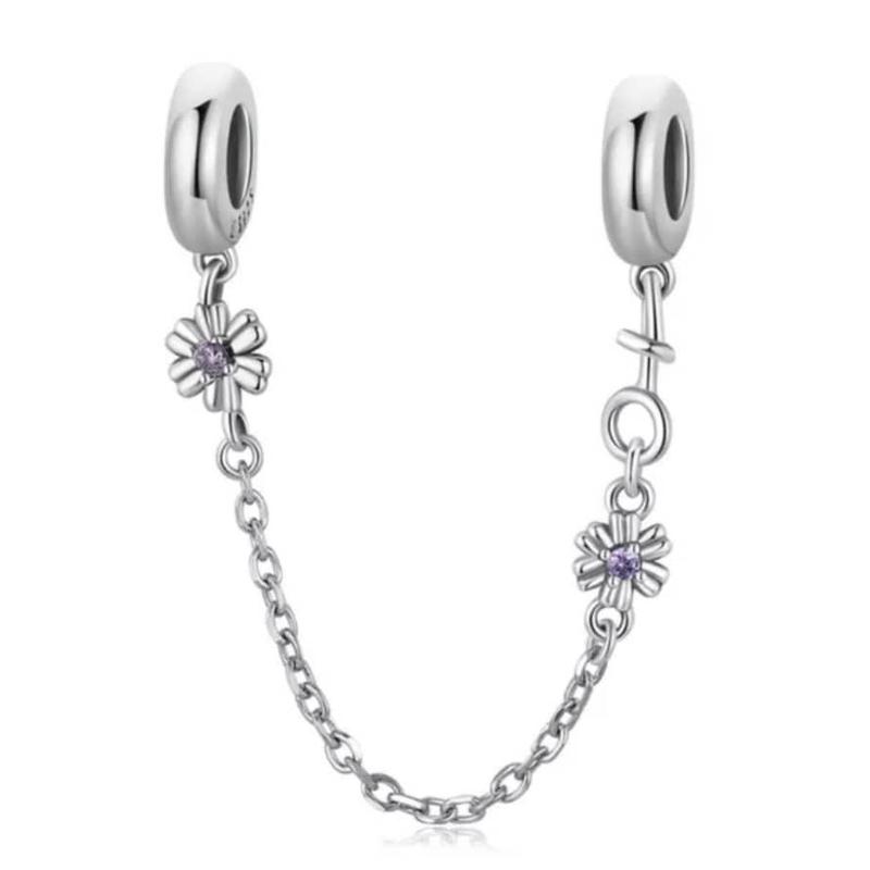 Серебряный шарм защитная цепочка "Ромашки". Серебряный стоппер для браслета. Серебро с пробой s925. Вес 2г Описание: - Если Вы ищете стильный, качественный и модный шарм класса Люкс, Вы попали на нужное объявление! - Мы предлагаем качественный продукт, в котором уверены! На каждом шарме стоит проба международного стандарта s925 (заводская гравировка). - Защитная цепочка "Ромашки" выполняет защитную функцию, предохраняя браслет от падения при случайном расстегивании. А цветы на цепочке придадут романтичности Вашему образу и напомнят о теплых летних днях. В кольцах размещены силиконовые резинки, выполняющие функцию стоппера. На ромашках по самому центру расположены камешки фиолетового цвета (циркон). - Каждая бусина бережно упаковывается в подарочную коробочку (без логотипов). После этого она совершает небольшое, но волнующее путешествие к своему счастливому обладателю. - К каждому заказу Вы получаете в подарок салфетку для чистки серебра (индивидуальная упаковка). - Мы работаем непосредственно с производителем, поэтому наши цены приятны. Переходи в наш Инстаграмм