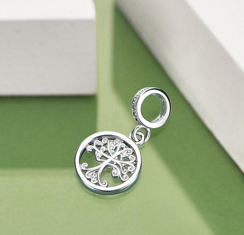 Серебряный шарм с подвеской дерево серебро 925 проба родированное 999 1.43г