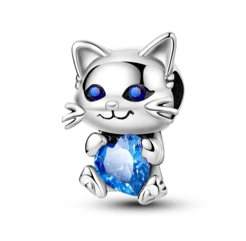 🛍️ Шарм 😻 Котик с голубым глазами 🩵 сердце Серебро 925 пробы окисленный метод обработки с цирконием 💎💎💎 Не содержит вредных металлов. Подходит к оригинальному браслету 📿 Наличие и цену уточняйте 🤗 Работаем по предварительной оплатке и наложенному платежу с авансом 💸
