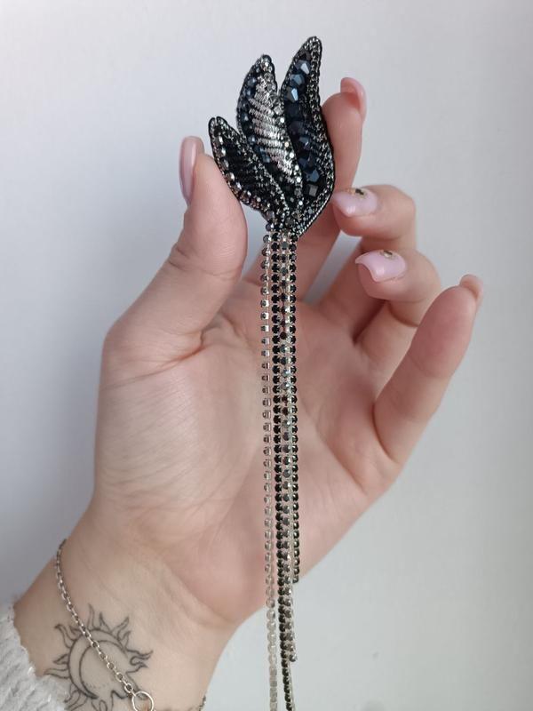 Моносерга в двух оттенках, золото и серебро, самые выигрышные и самые нарядные. Моносерьги нынче в моде, прекрасное завершение праздничного образа. Длина 20 см Стоимость указана за 1 Дополнительные характеристики: Цвет : Черный Материал : Бисер Материал : Бусины Материал : Гипоаллергенная фурнитура Материал : Металлическая фурнитура Товар под заказ