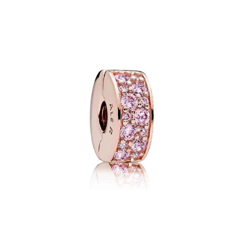 Серебряный шарм (подвеска) для браслета-клипса пандора "розовое паве" 781817pcz