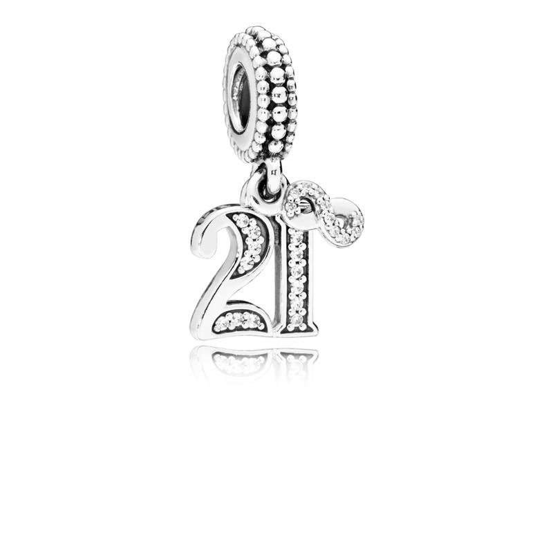Серебряный шарм (подвеска) для браслета пандора "21 год" 797263cz