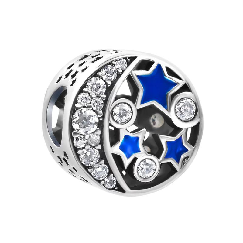 Серебряный шарм с фианитами и эмалью Ночное небо