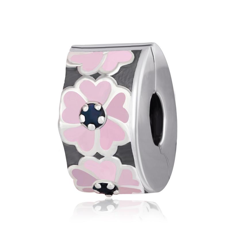 Серебряный шарм "розовые примулы" со вставкой фианит/эмаль