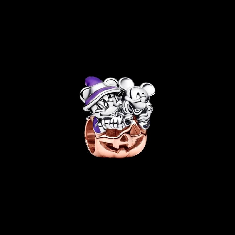 Серебряный шарм pandora "микки и минни маус в тыкве"