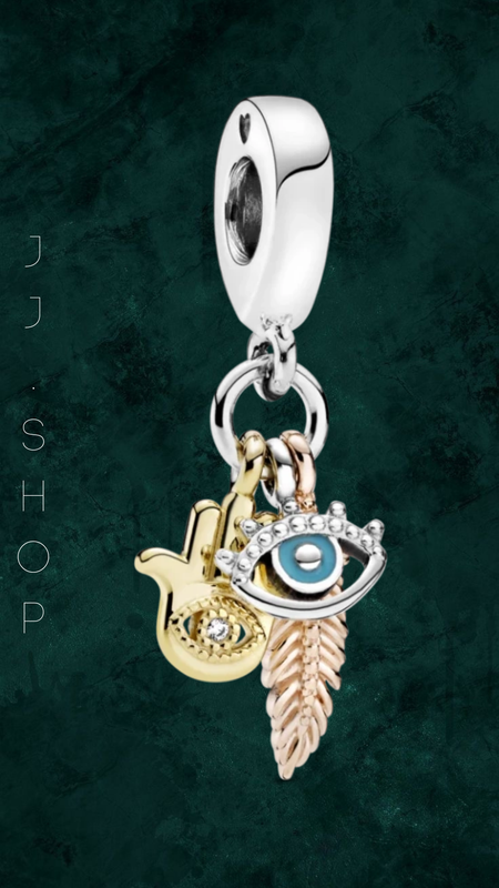 Серебряная бусина шарм "хамса, всевидящий глаз и перышко" pandora (пандора) 768785c01