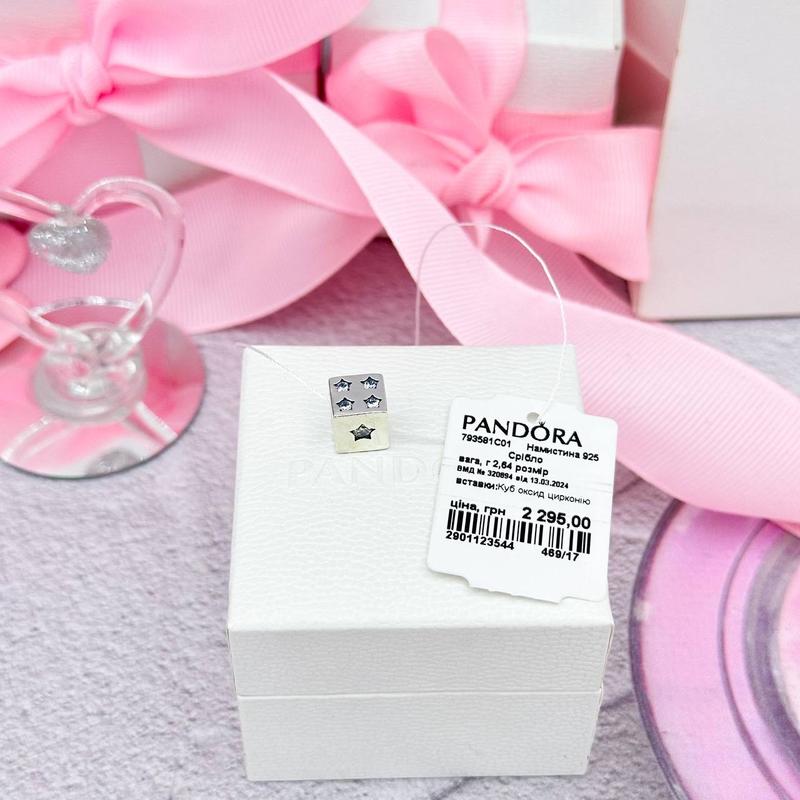 Серебряная бусина Pandora «Щасливый кубик» Артикул: 055-23302 Материал: Серебро Проба: S925 ALE Вес: 2,64 г Камни вставки: Кубический оксид циркония Страна производитель: Таиланд