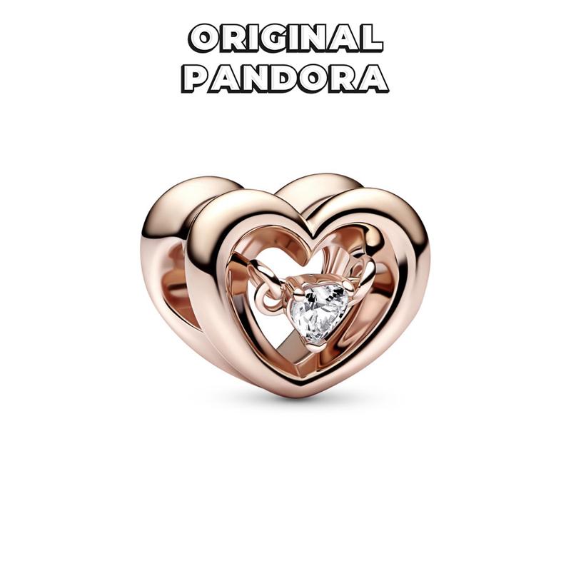 Пандора оригинал из сша 782493c01 сияющее сердце и плавающий камень бусина шарм розовое зо...