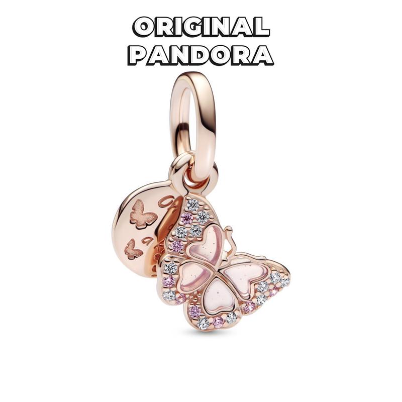 Пандора оригинал из сша 782555c01 бабочка розовая бусина шарм подвеска с камнями розовое з...