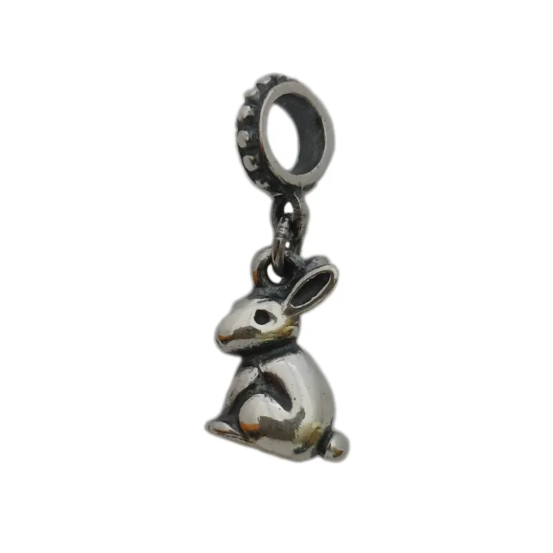 Бусина шарм Зайчик из серебра 992-ч 💎 Диаметр отверстия: 4.5 мм 💎 Средний вес изделия: 2.30 грамм 💎 Металл: серебро 925 пробы 💎 Покрытие: чернение