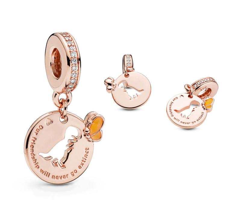 Серебряная подвеска-шарм пандора "бабочка и динозавр" в позолоте 788180cz