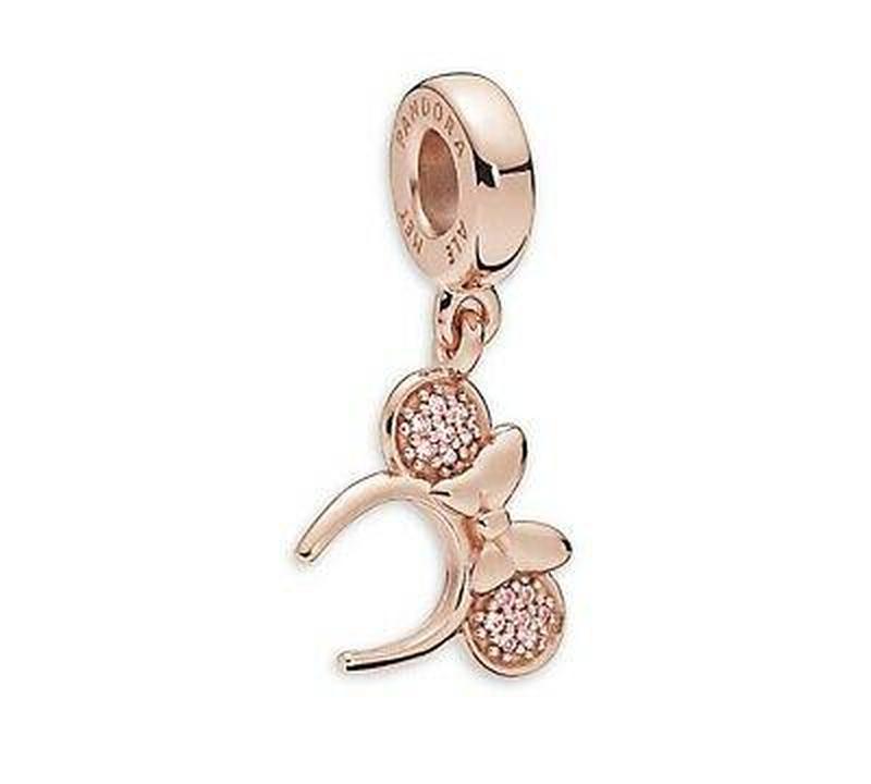 Серебряный шарм для браслетов пандора в розовой позолоте "ушки минни"