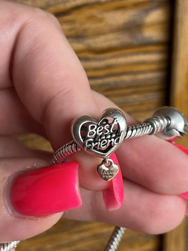 Намистина "Люблю тебе, моя найкраща подруго" Артикул: 782243C00 ОРИГІНАЛЬНИЙ Намистина виконана у формі серця зі срібла 925-ї проби, що містить вигравіюваний напис “Best Friend” (“Найкраща подруга”), із сердечком-підвіскою з покриттям рожевим золотом 14k. Закріпіть цю намистину на вашому улюбленому браслеті чи іншій прикрасі, щоб розказати всьому світу, як ви цінуєте свою найкращу подругу. Стан хороший, але на нижньому серденьку трішки стерлась позолота зверху, при носці не помітно. На фото видно стан і пробу. Вартість нового: 2495 грн. Я продаю за 400