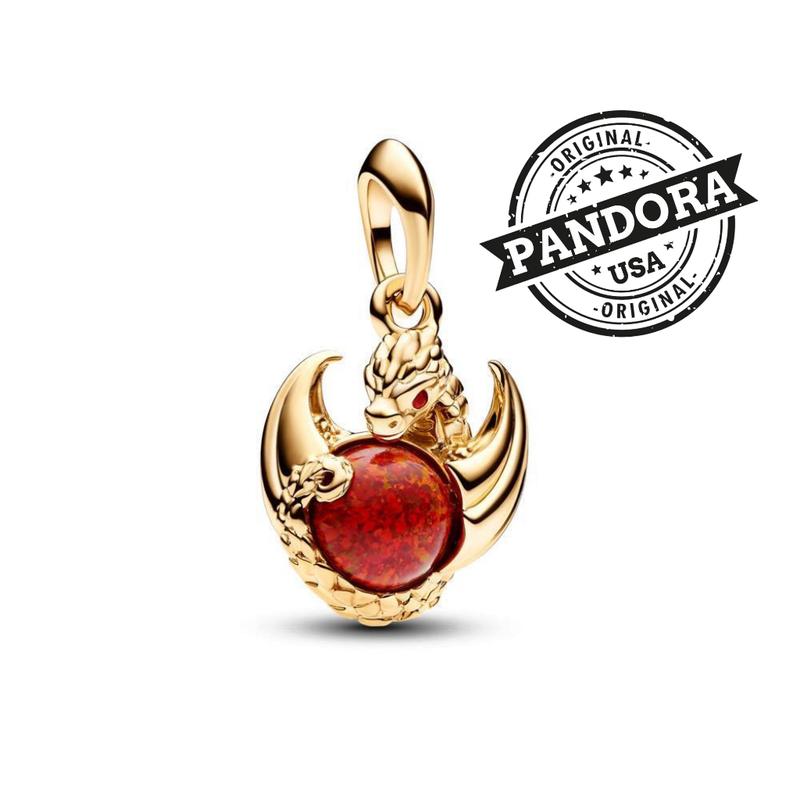 Шарм пандора оригінал сша срібло 925 проба золотий колір дракон гра престолів червоний кам...