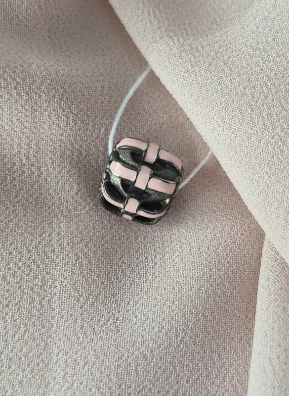 Срібна намистина шарм 925 проби із вставками рожевої та чорної емалі, вага виробу 1,93 грами.
