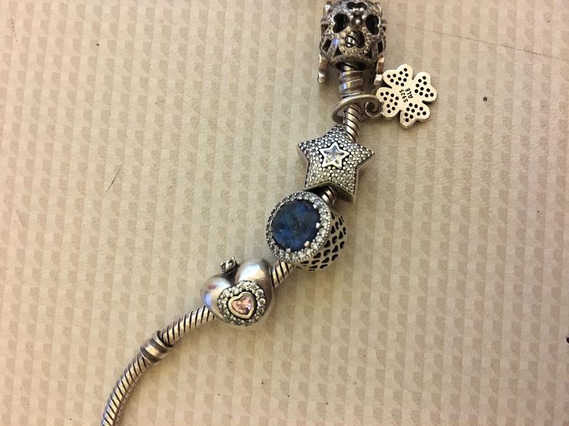 Покупала в оригинальной Пандоре , расправлю бусинки : звездочка 850гр , сердце 850 гр , голубой шарм 750 гр
