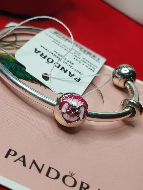 Шарм клипса пандора серебро 925 проба цирконий эмаль ale пломба бирка защёлка фиалка розов...