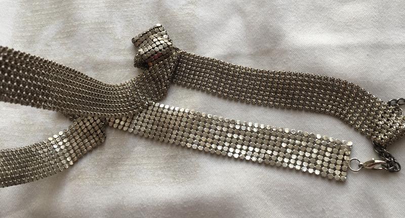 Металевий пасок довжина 86+27см. Є невелике потемніння металу.