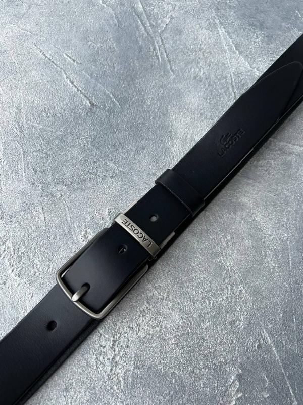 Ремінь чоловічий шкіряний чорний в стилі lacoste