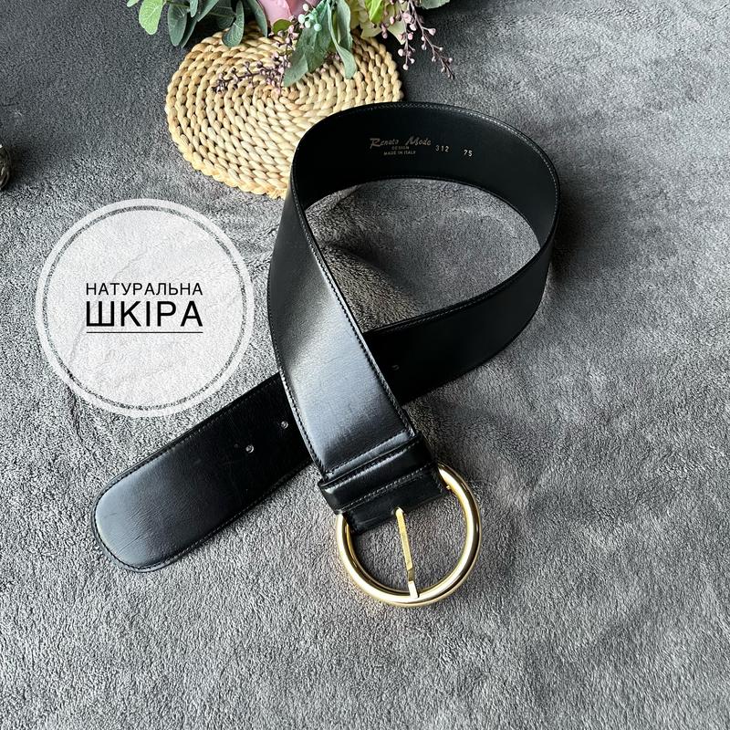 Пояс з натуральної шкіри, чорного кольору з золотою пряжкою, широкий в новому стані Ширина 6 см Довжина 88 см Робоча довжина 60-71 см (151224)